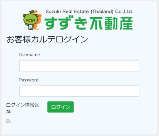 ユーザーネームとパスワードを入力しお部屋カルテにログインします。