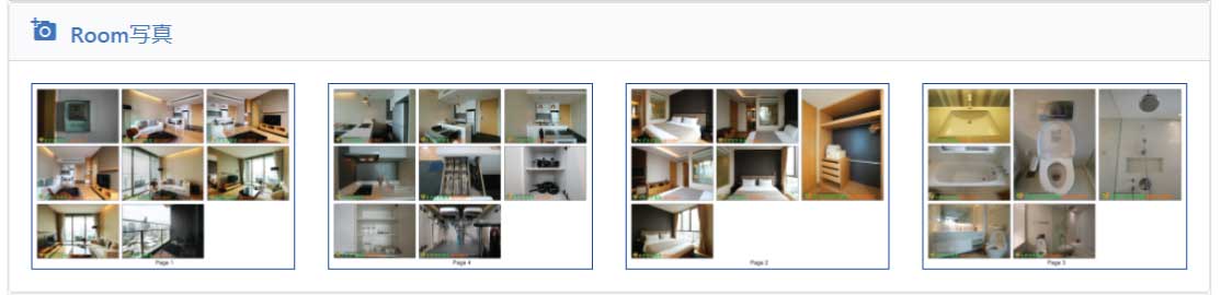 入居時の部屋の写真の欄です。玄関、リビング、キッチン、バルコニー、シャワールーム、各寝室の写真が保存されます。写真をクリックすると拡大することが可能です。