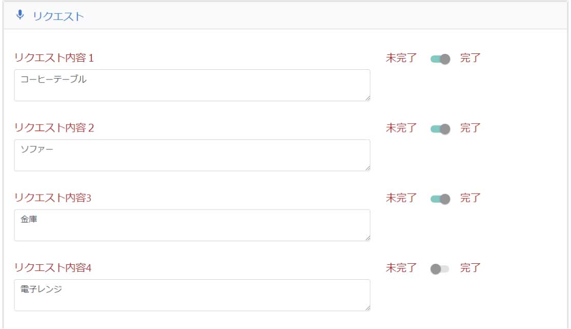リクエストした項目が完了済みなのか、未完了なのかを把握することができます。