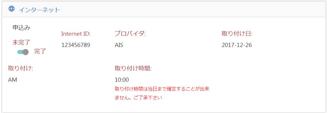 インターネットの契約情報、取り付け日などの記入欄です。