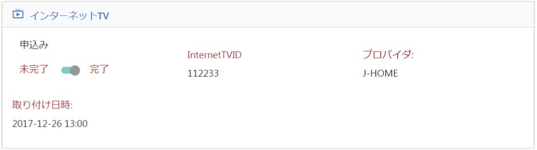 インターネットTVの契約情報、取り付け日などの記入欄です。