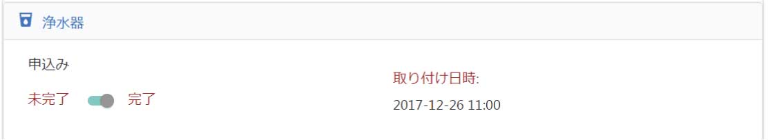 浄水器の契約情報、取り付け日などの記入欄です。