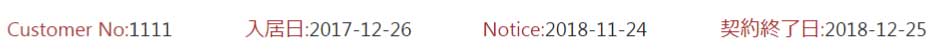 お客様毎にCustomer No.と入居日、Notice、契約終了日が記入されます。。
