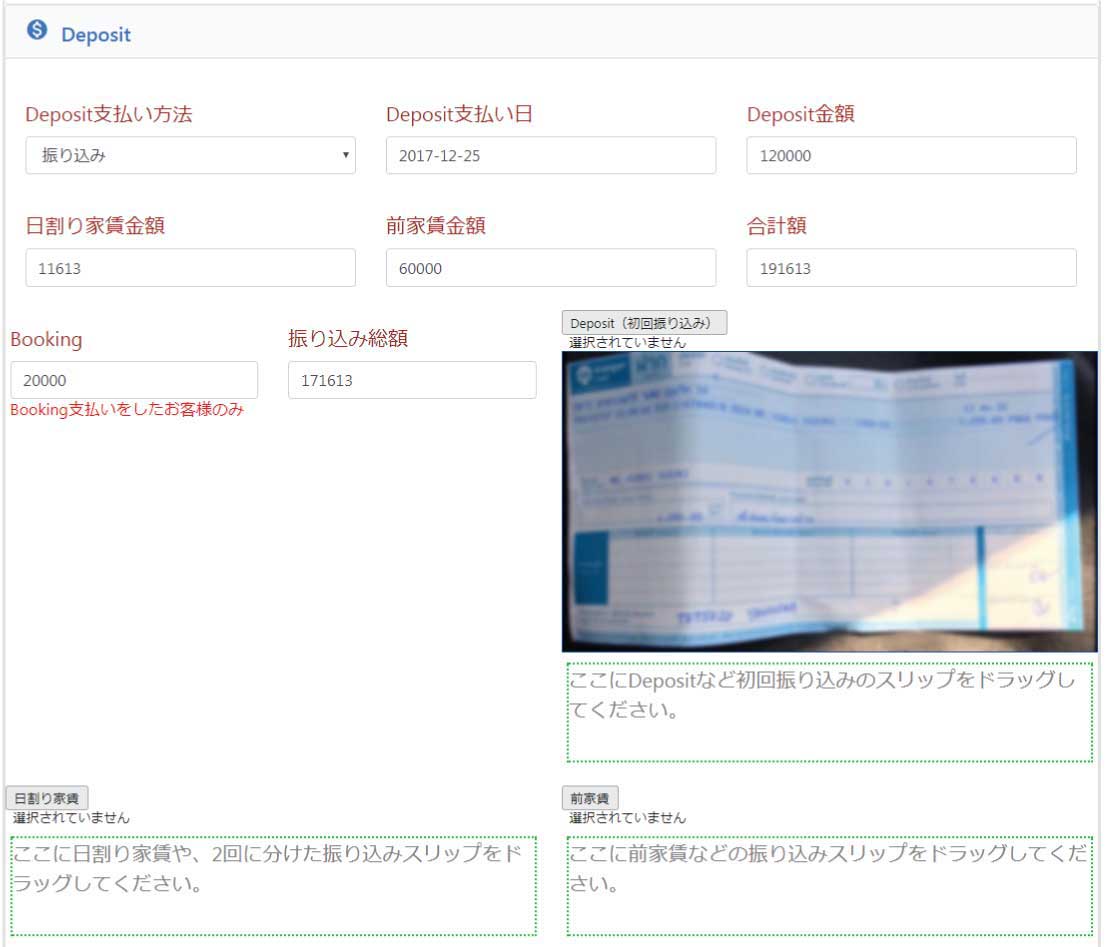 デポジットの記入欄です。