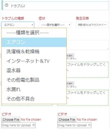 お部屋内の不具合またはトラブルについてはトラブルの欄に情報を追加ください。